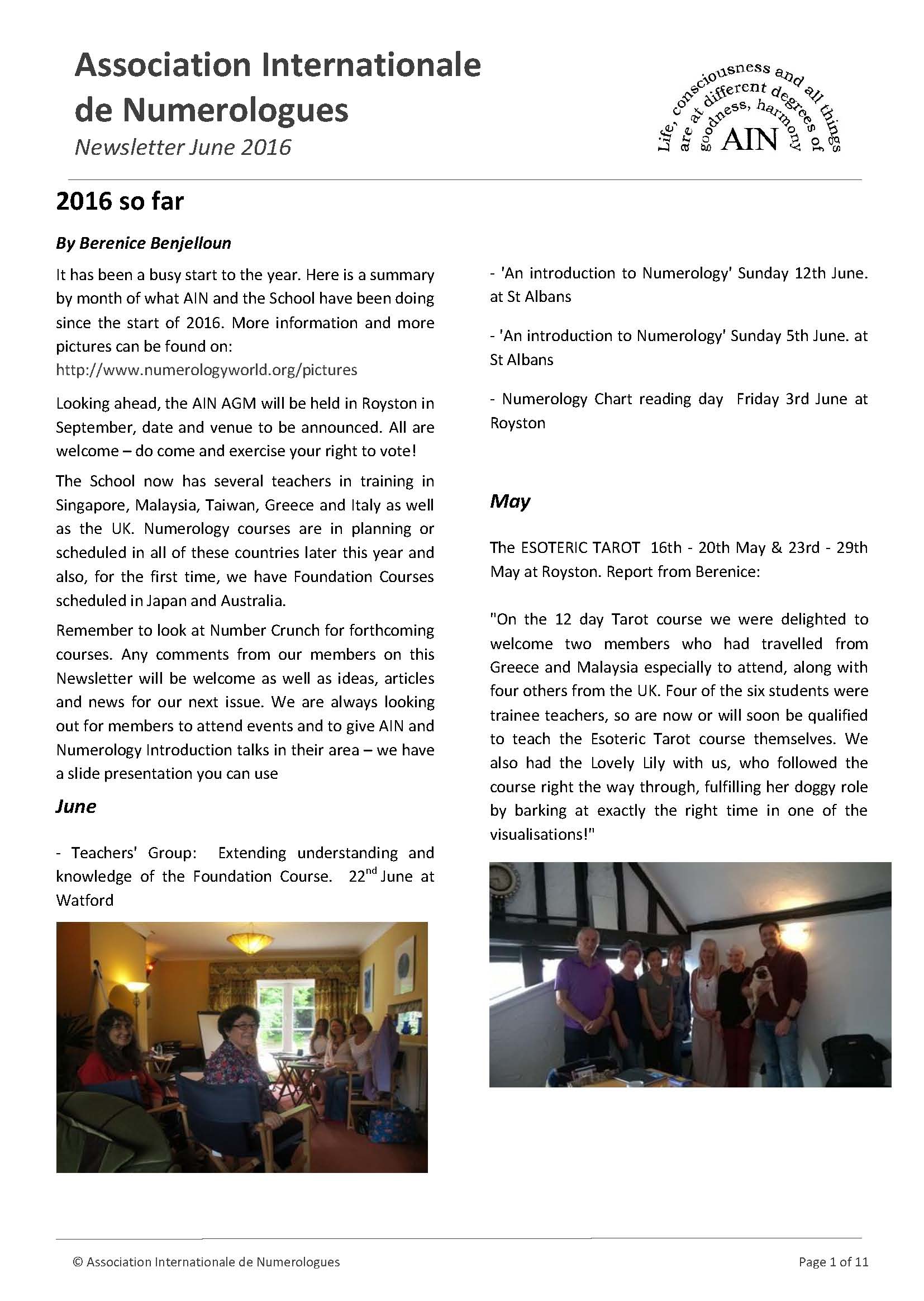 Article featured in ‘The Connaissance School of Numerology’ – July 2016 Newsletter