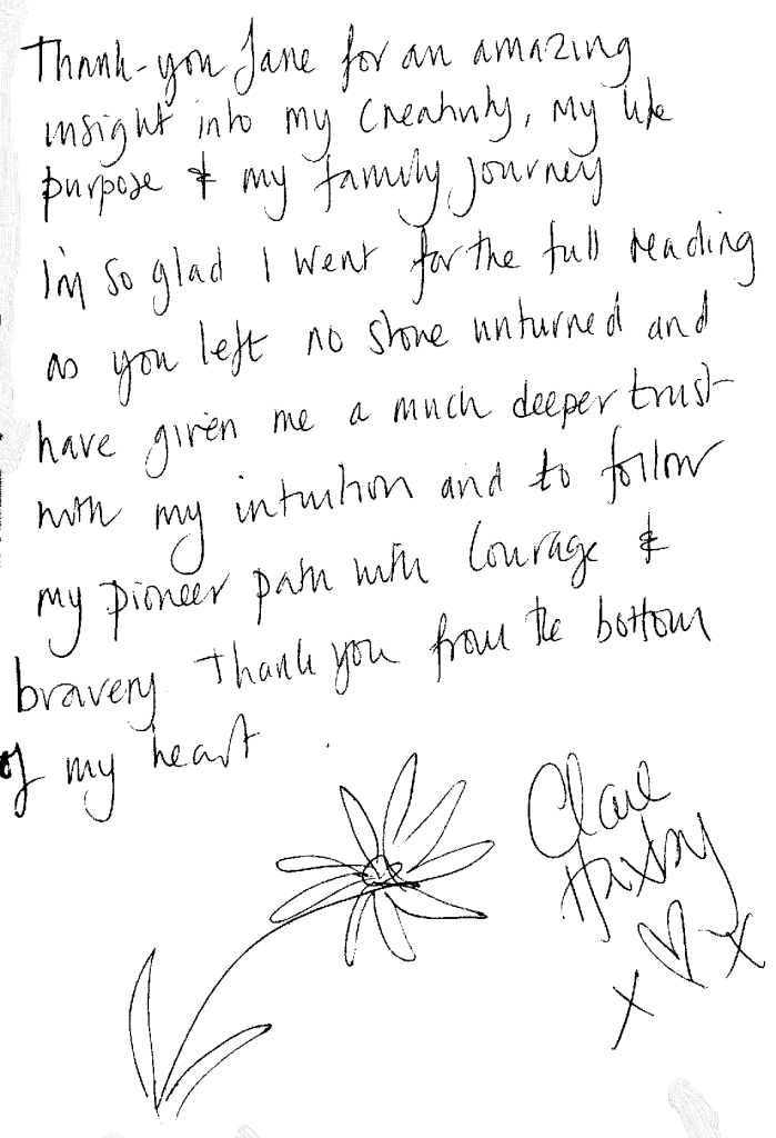“Have just had a numerology session with Jane Alton wow wow wow it was amazing. I have always known this year was my year to full fill my heart and my session with Jane has just confirmed it. It has given me more confidence to get out there and do what the universe is asking of me . I would highly recommend seeing Jane” .