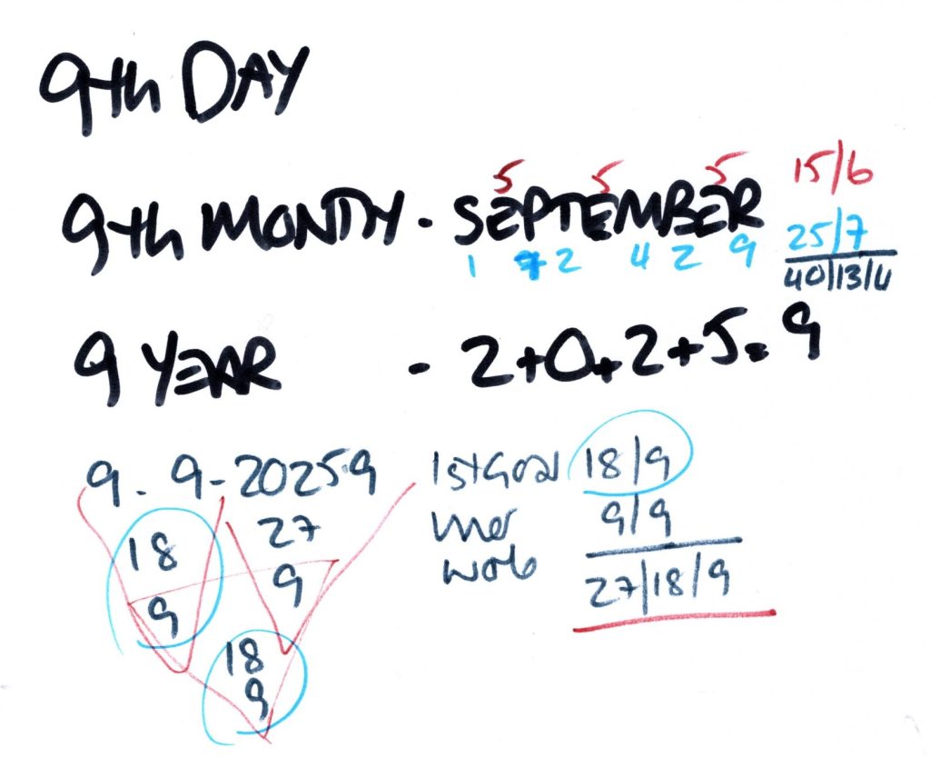 The date 9/ 9/ 2025 is dominated by 18/ 9 energy.
