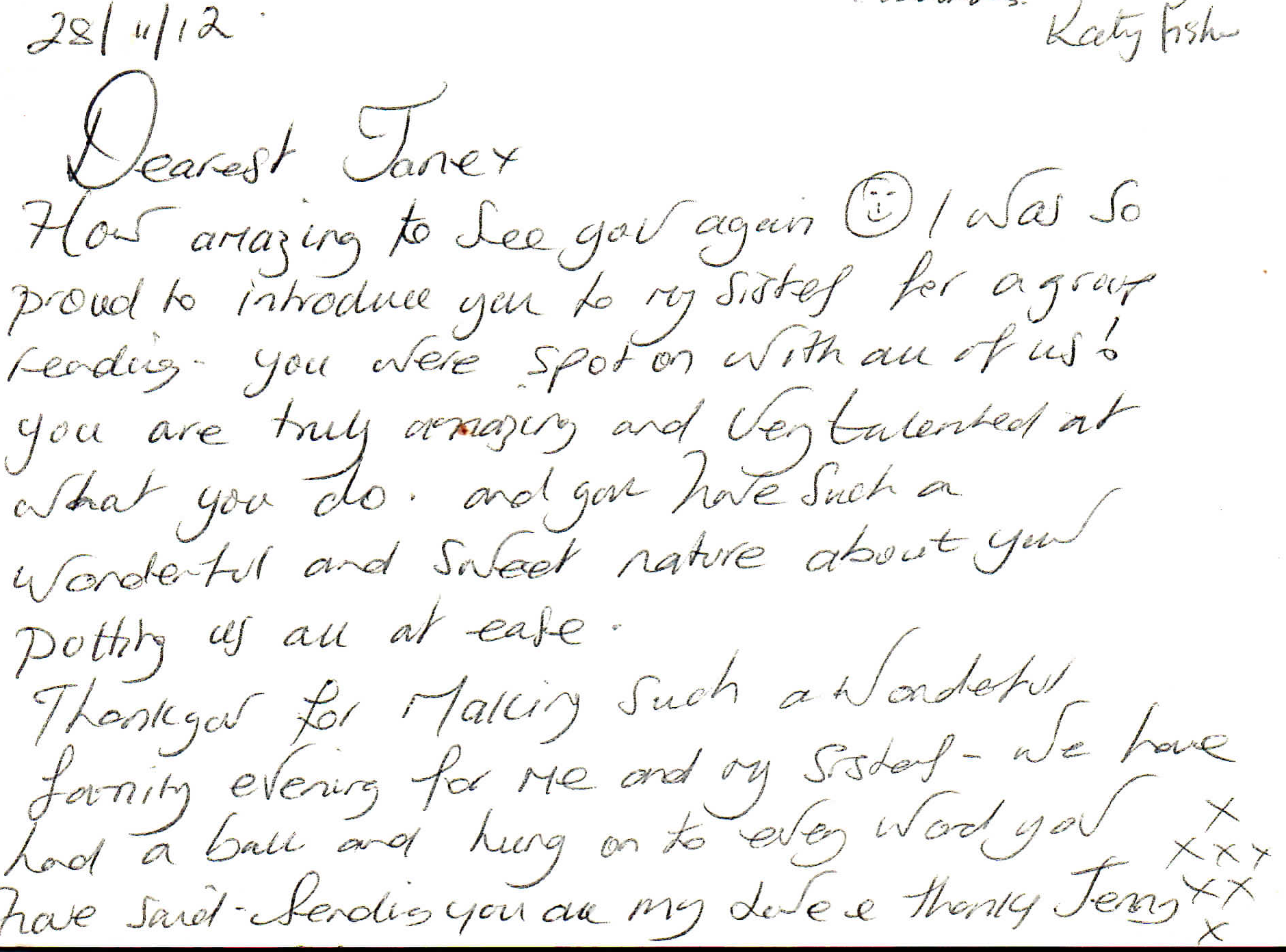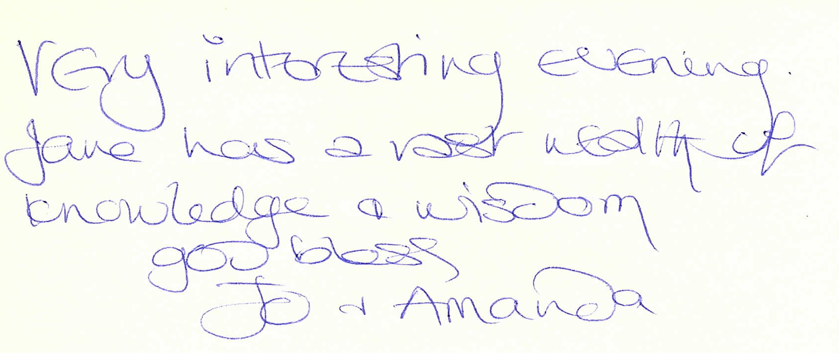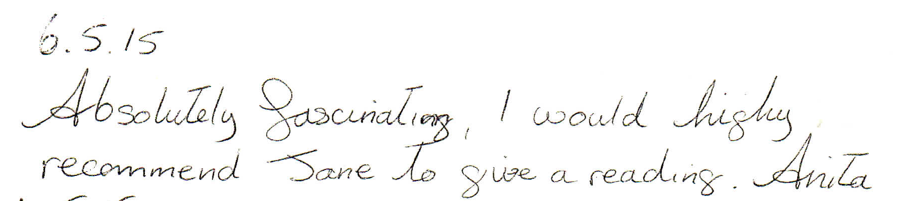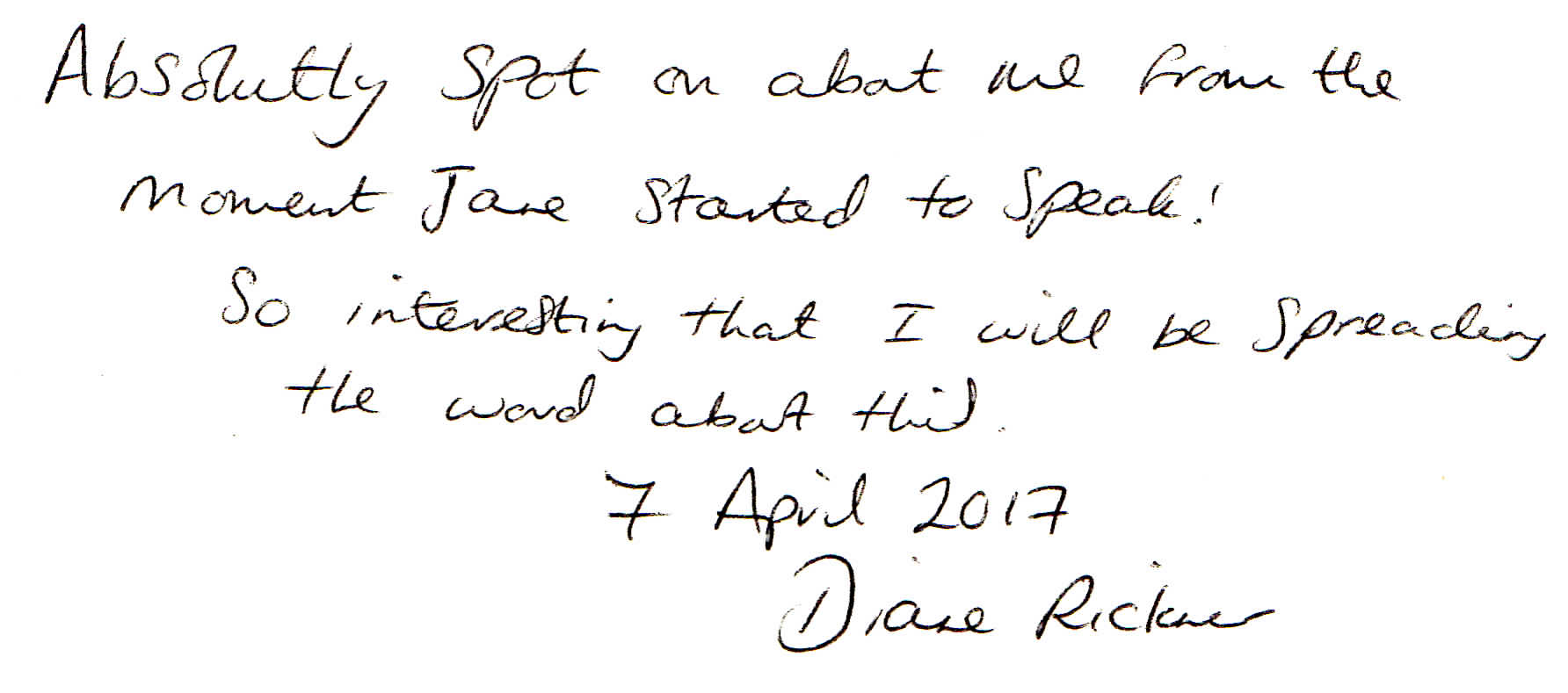 “Absolutely Fascinating, I would highly recommend Jane to give a reading”