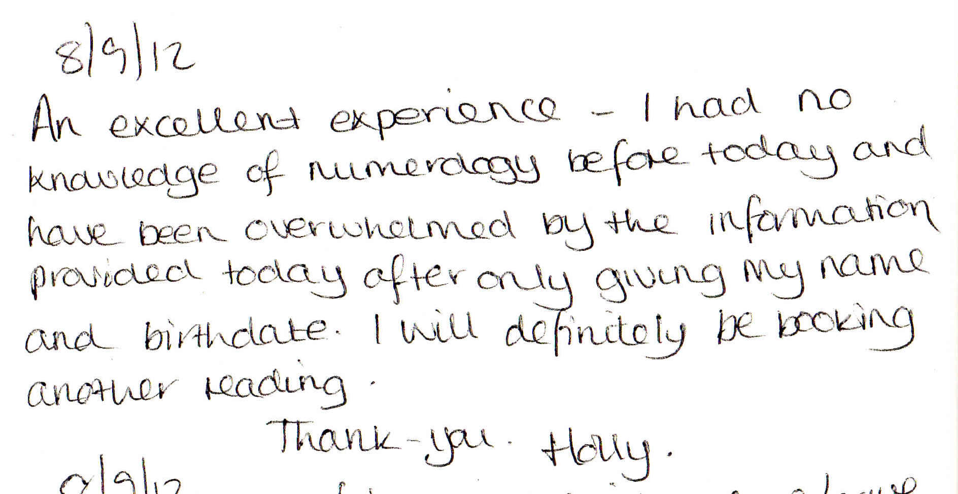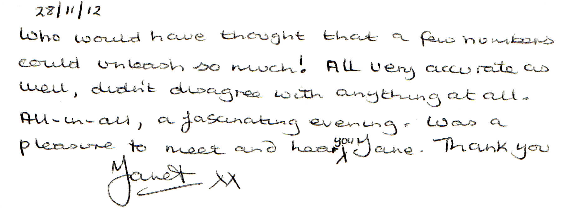 “Thank you Jane. Really informative”  SW. Numerology Party, Dartford