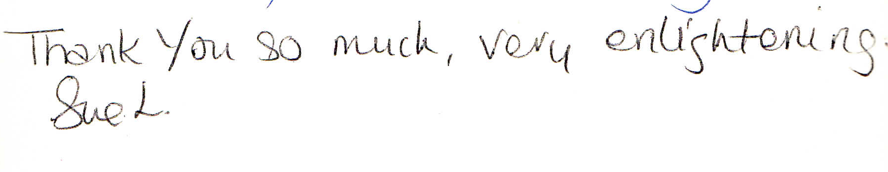“Really interesting, insightful & eye opening. Lots of information. Thank you so much !”  S. Swords of Energy Group, Rochester