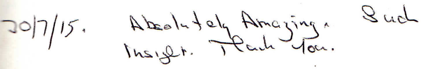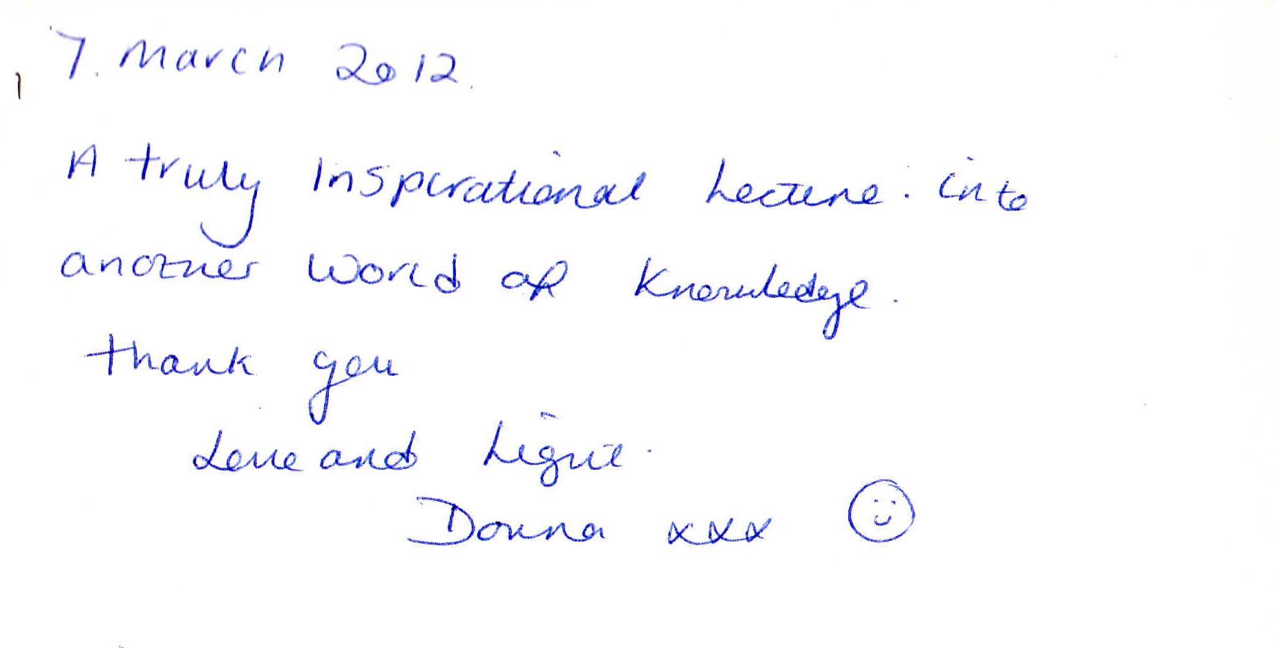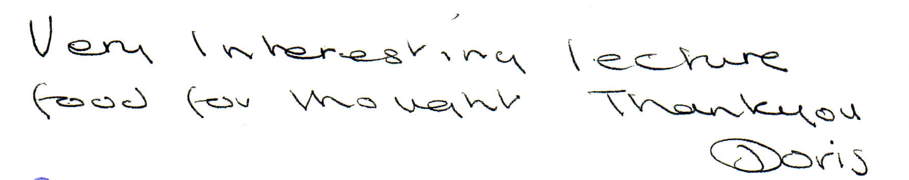 “Brilliant evening. Thoroughly enjoyed your talk.. Many thanks”  M. Forest Row Spiritual Community Meet-Up Group