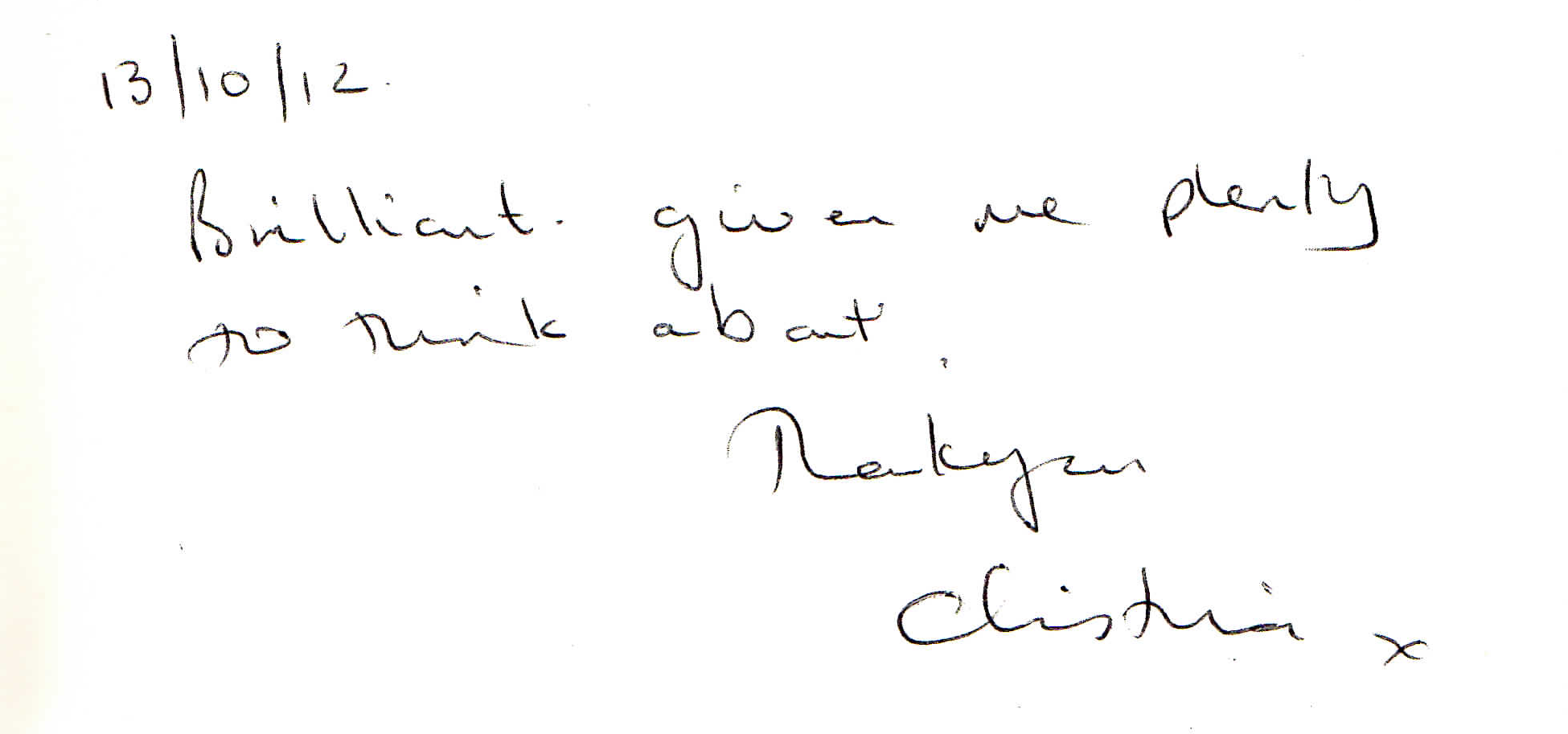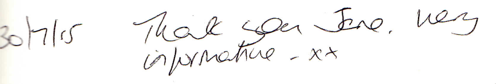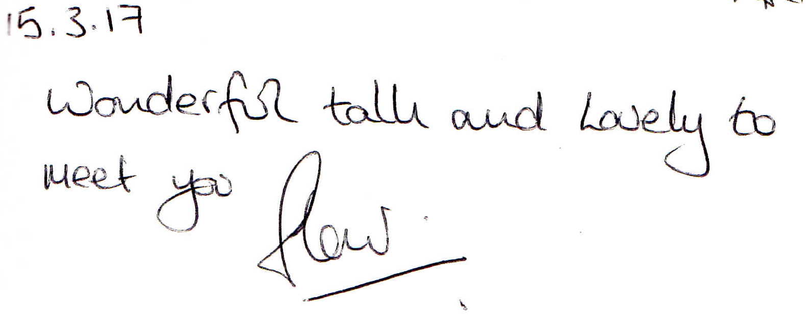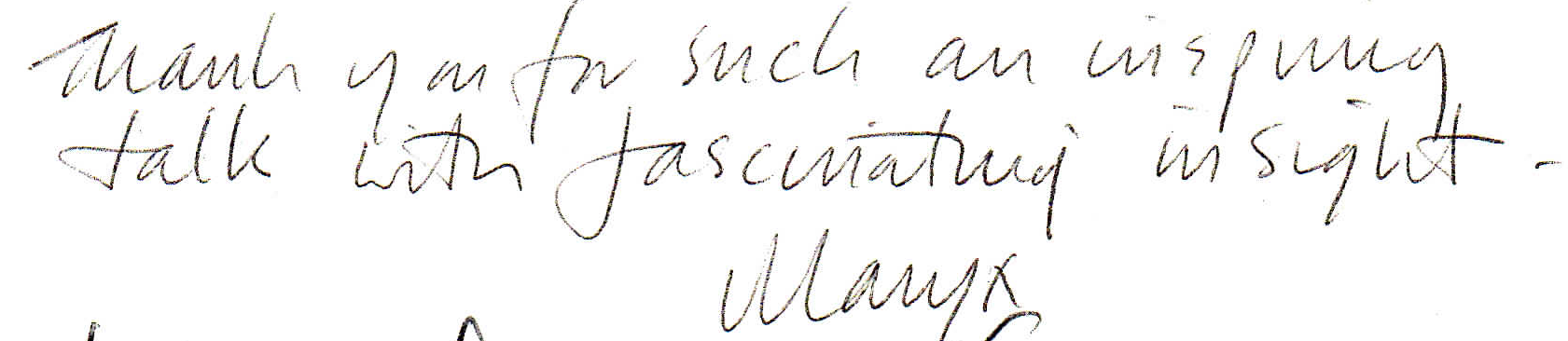 “Thank you for such an inspiring talk with fascinating insight”. MW, Kent