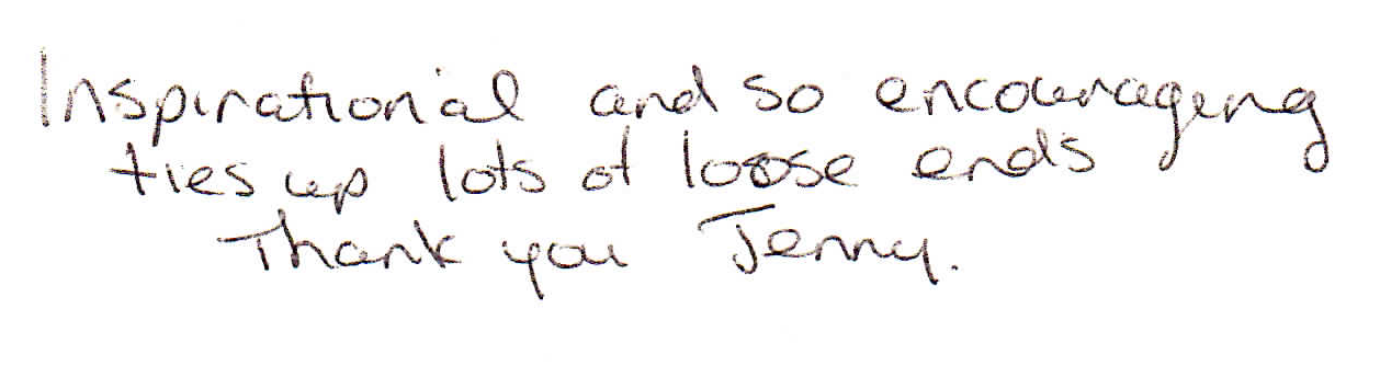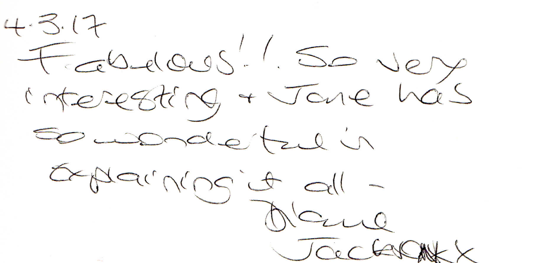 “Really enjoyed the evening. Jane brought to light ideas to inspire me going forward”