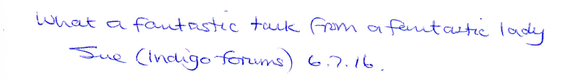 “What a fantastic talk from a fantastic lady” Sue Ford founder of Indigo Forums