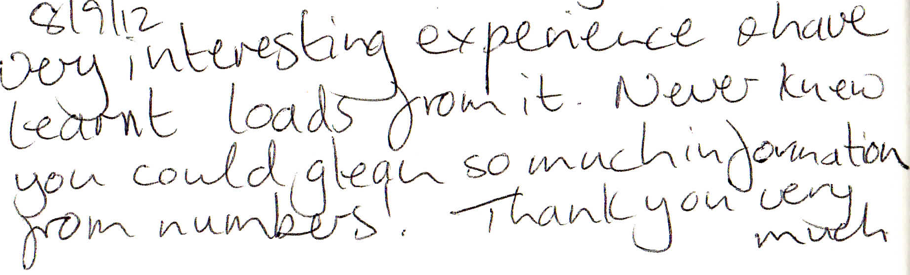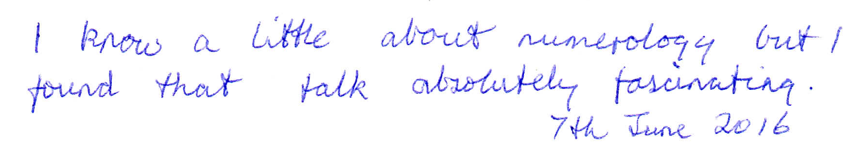 “I know a little about Numerology but I found your talk absolutely fascinating”