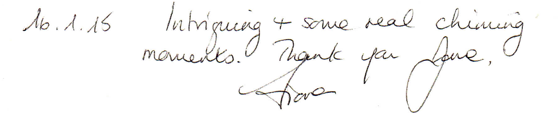 “Intriguing and some real chiming moments”. FB, Sevenoaks, Kent